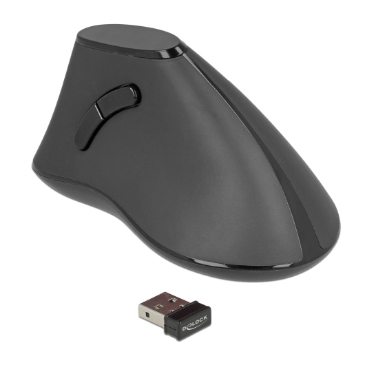 DELOCK ασύρματο vertical ποντίκι 12622 οπτικό, 5 πλήκτρα, 1000DPI, μαύρο