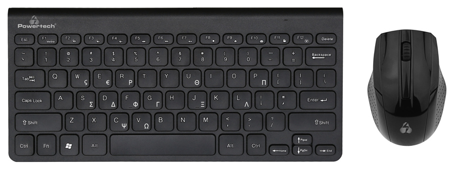 Set περιφερειακών για PC από την Powertech που αποτελείται από ασύρματο πληκτρολόγιο και ασύρματο οπτικό ποντίκι.